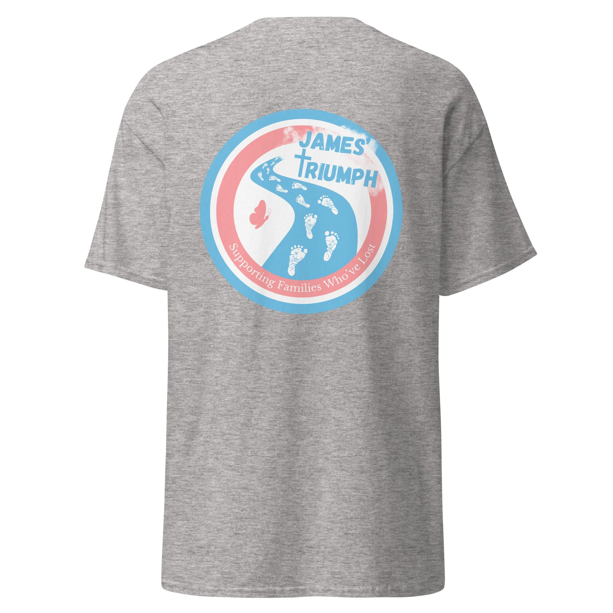 Wear your support for James' Triumph! The 100% cotton unisex classic tee will help you land a more structured look. It sits nicely, maintains sharp lines around the edges, and goes perfectly with layered streetwear outfits. approxiamtely 20% of these shirts goes to funding our mission.